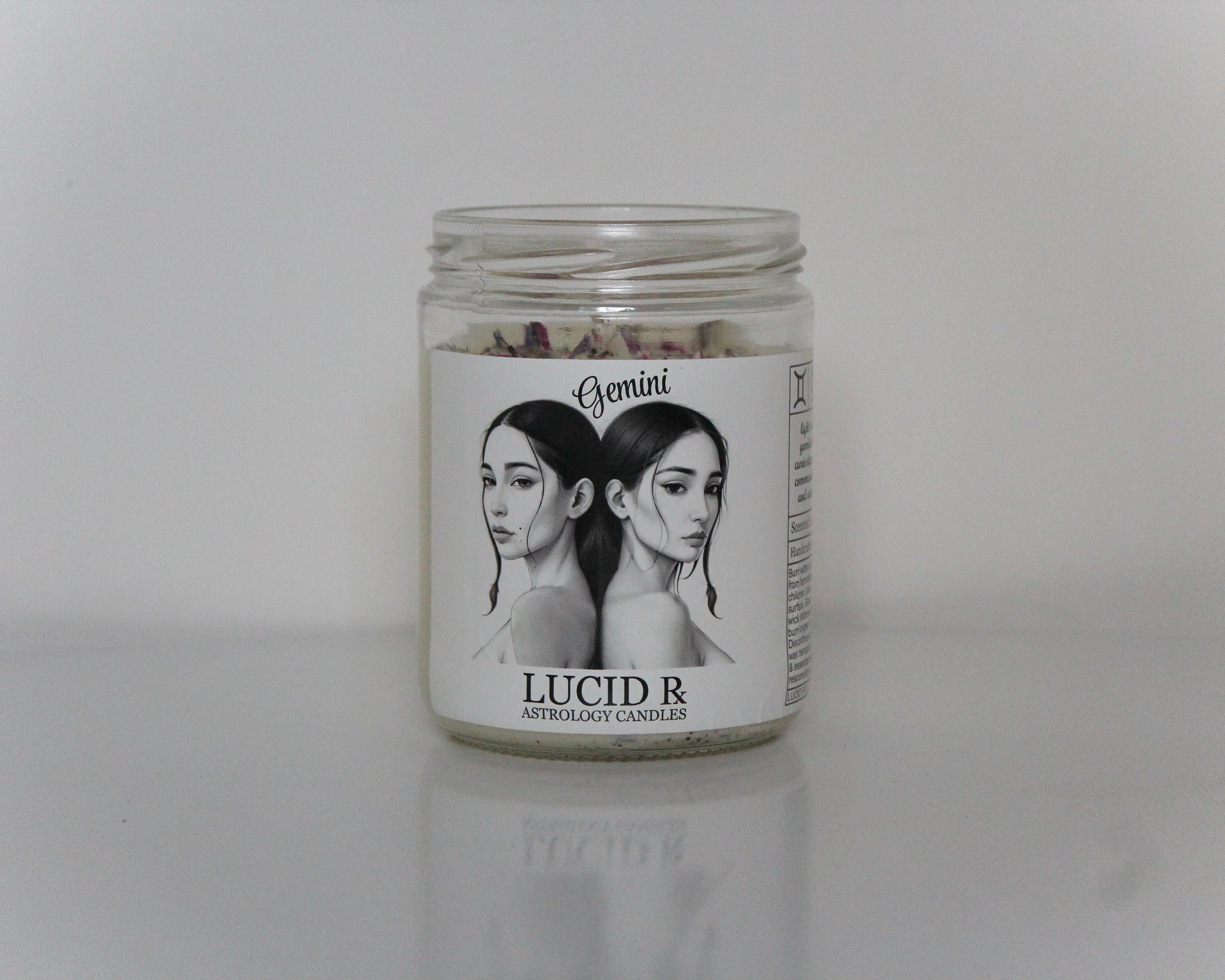 Stimulate your mind and spark duality with our Gemini Candle — a hand-poured soy wax candle topped with herbs and flowers that complement Mercury and the air element. Use it to activate Gemini energy in your chart (Sun, Moon, Rising, Venus, or Mars signs), during Gemini transits, or to align with 3rd house themes of curiosity, learning, and close interactions.