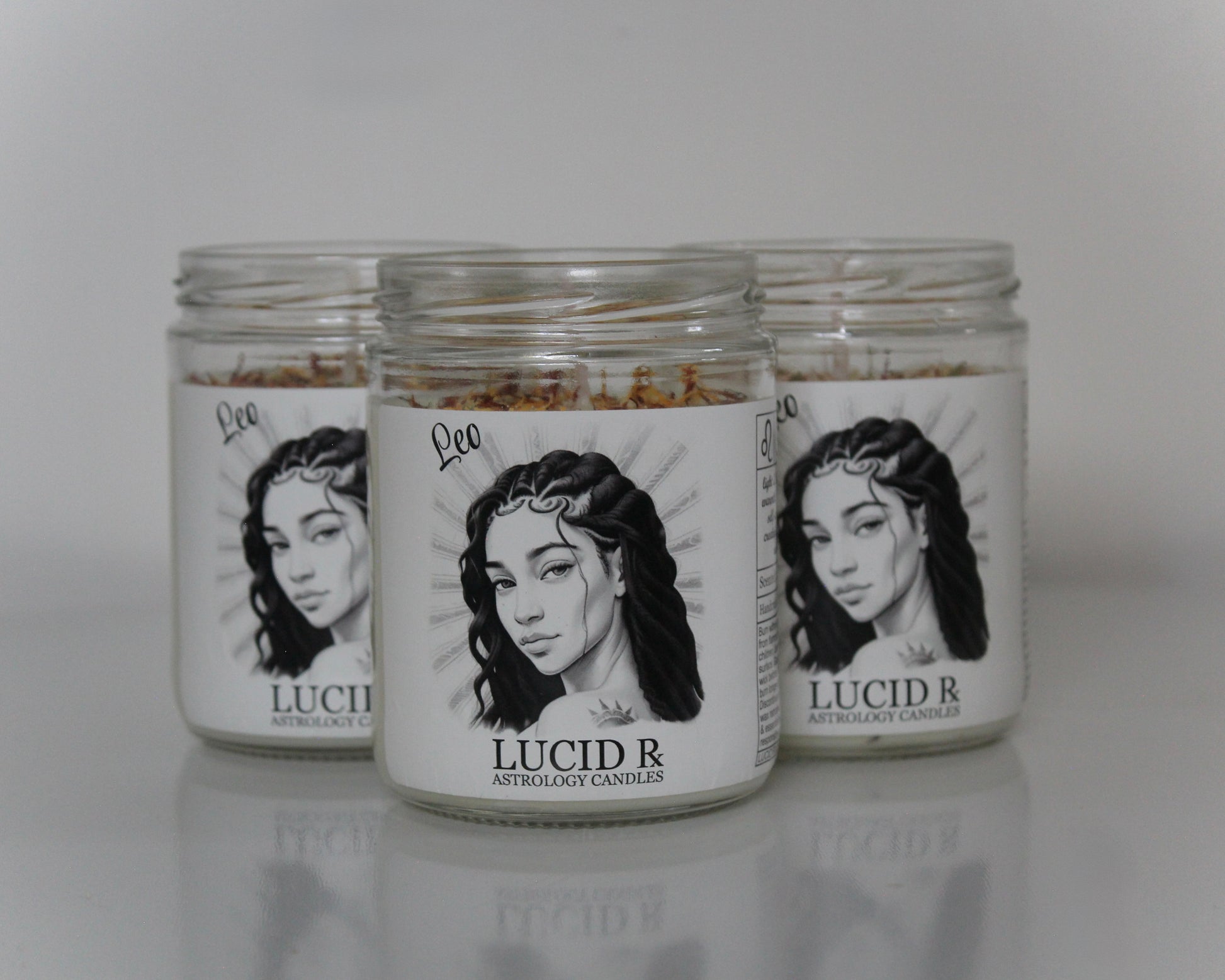 Spark confidence and joy using our Leo Candle — a hand-poured soy wax candle topped with herbs and flowers that complement the Sun and fire element. Use it to activate Leo energy in your chart (Sun, Moon, Rising, Venus, or Mars signs), during Leo transits, or to align with 5th house themes of creativity, pleasure, and personal power.